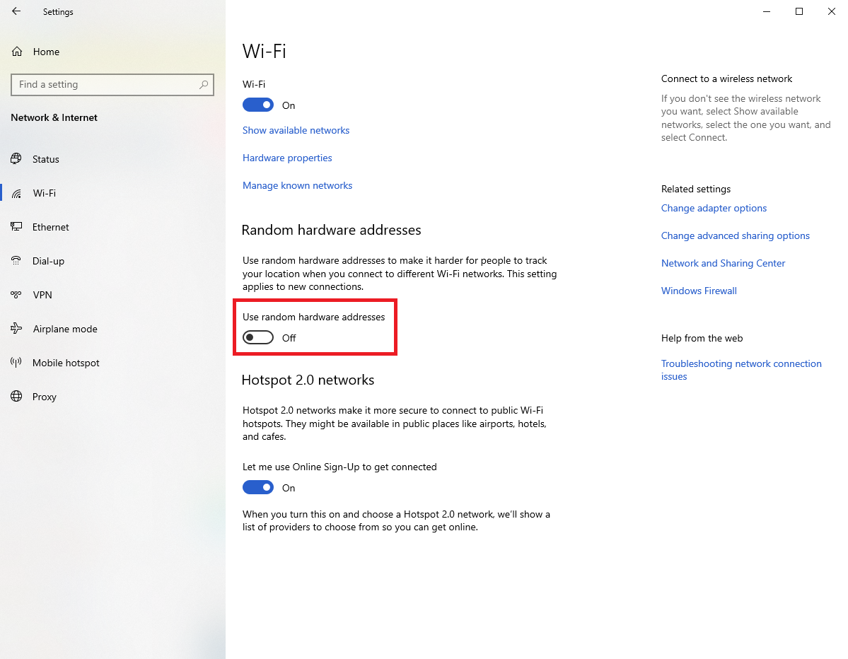 The error message 'You have not logged in yet or your session expired' is linked to the randomised hardware (MAC) address feature on Windows computers.